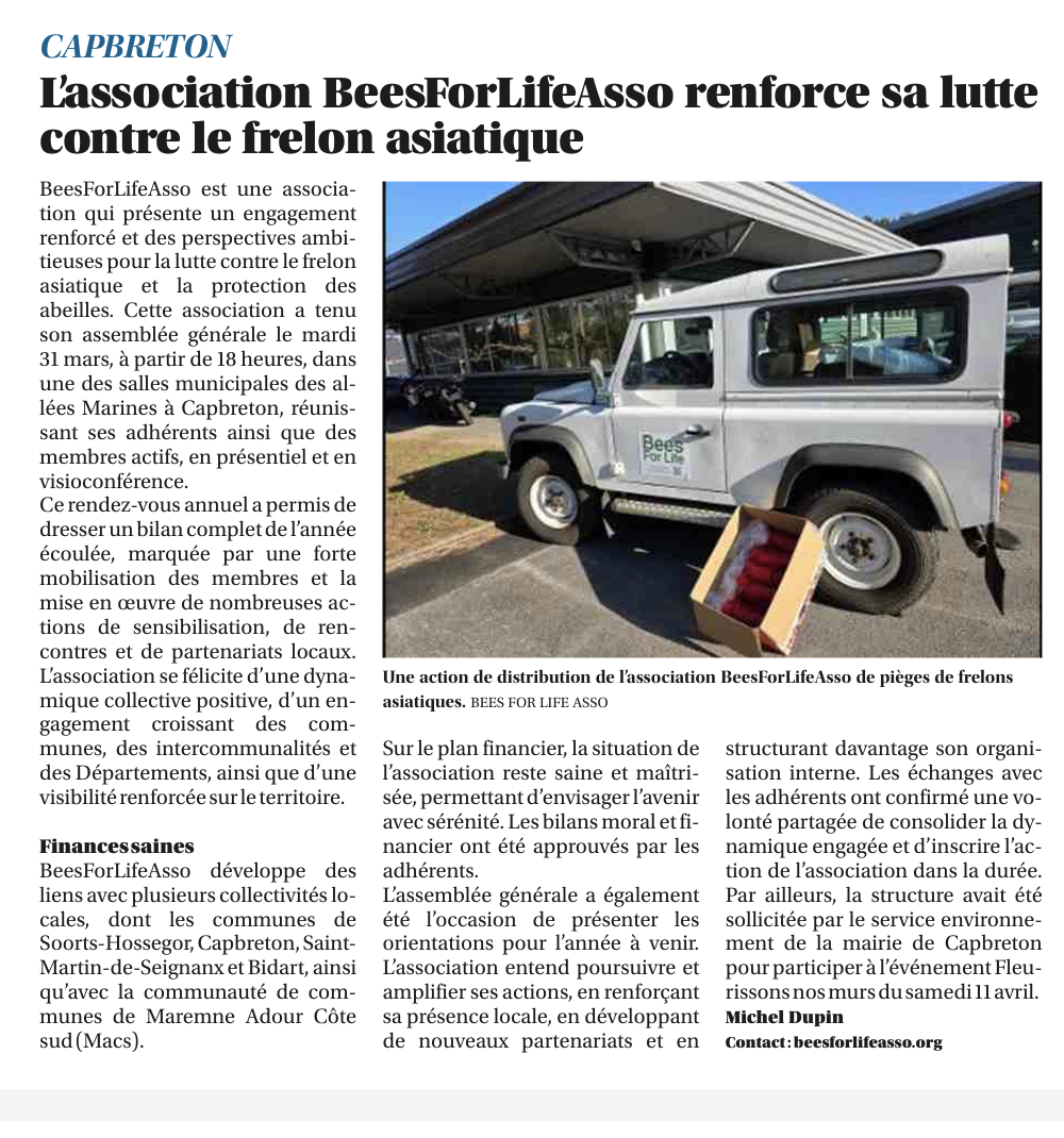 BeesForLifeAsso participe à la distribution des piéges nasse dans le cadre de son partenariat avec la ville de Capbreton